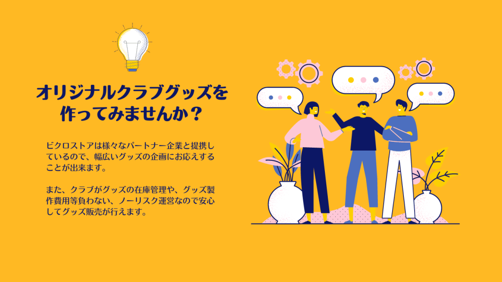 ・グッズの企画から発送まで全てビクロストアが行いますのでチームサイドの業務負担はありません